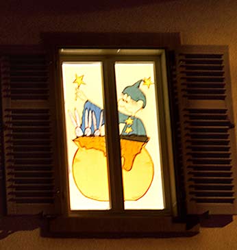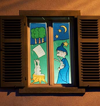 "Domino", das Familienzentrum in Frastanz, schmückt alljährlich das Haus am Kirchplatz mit einem Adventkalender. Die 9 Fenster, welche von unterschiedlichen Familien und Gruppen gestaltet werden, erzählen heuer die Geschichte vom Zauberer Schnukke-Bukk.